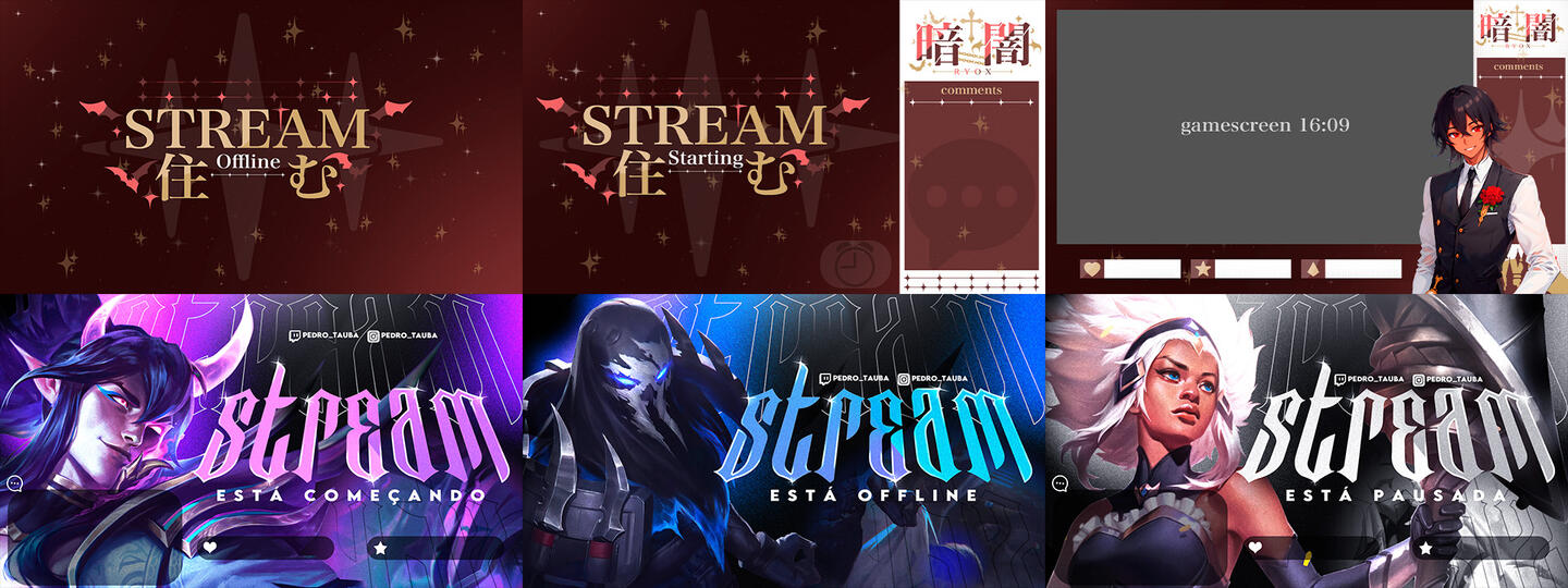 No caso este preço é o pacote completo.4 overlays (offline, starting, ending e pause), 1 tela in game, até 10 paineis, 1 tela just chatting e banner da twitch